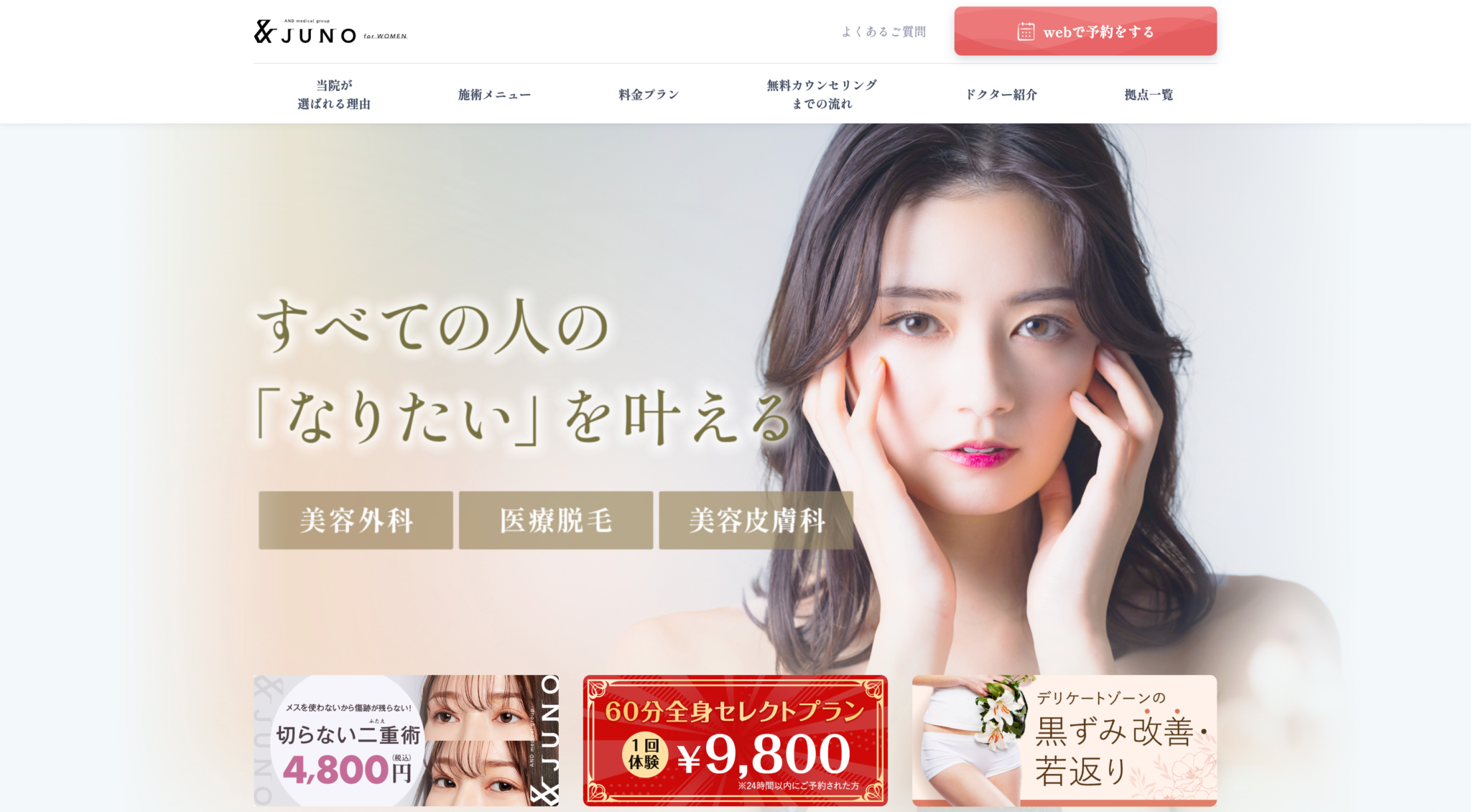 &JUNOは二重整形をはじめとした美容整形などを行っているクリニックです。
