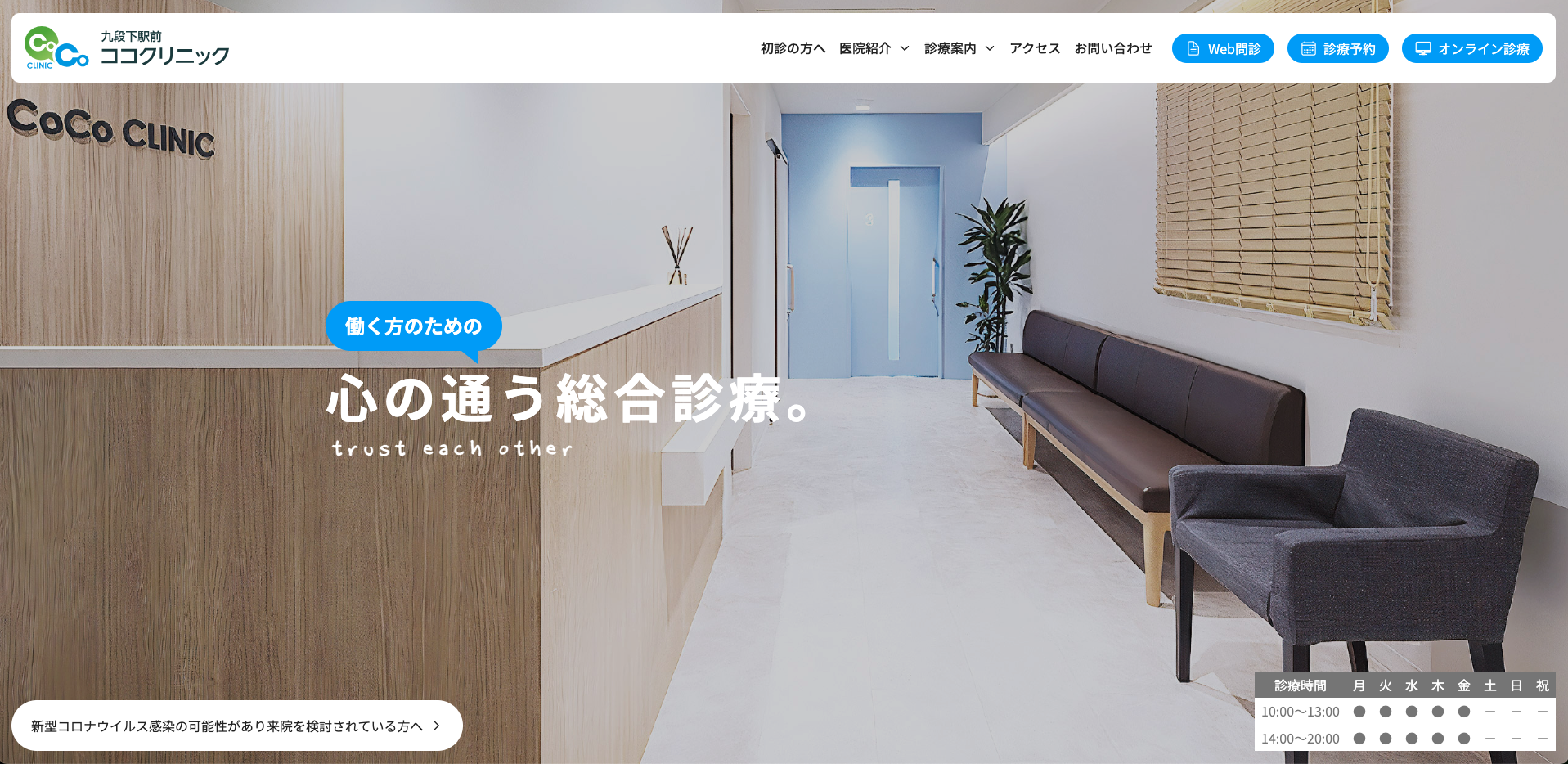 『九段下駅前ココクリニック』は各線「九段下駅」5番出口のすぐ目の前で、平日は毎日夜8時まで診療をしています。近隣の会社にお勤めの方、沿線にお勤めの方、乗り換えで九段下駅を利用される方、夕方急にお子様が熱を出してお困りのお母様にも心強い味方です。